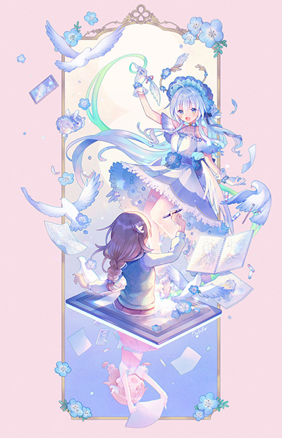 描いている絵のキャラクターが飛び出してきて、そのキャラクターが絵を描いている様子に、どれだけ絵を描くことに没頭しているのか、魅力的に表現されています。色のトーンのまとめ方も上手いし、描き込むところ、抜くところを上手に描き分けていて、見ていて気持ちのいいところに落とし込んでいて、とても魅力的な作品だと思います。
