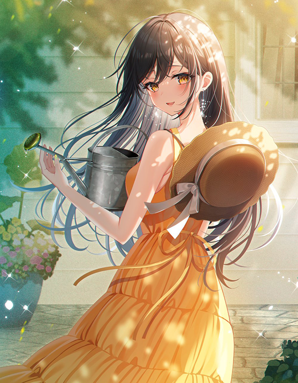 全体的なバランスがとれていて、色味が綺麗ならそれでいいと思っている節がありますが、よく「暖かい雰囲気」とか「光の表現」を褒めていただけるので、そこは自分の強みなのかなと思って意識するようになりました。木漏れ日だったり、どこかから光が当たっているような表現や、髪がなびいていて風が吹いている感じみたいに、キャラクターのいる世界を想像して絵の中に取り込もうとしています。