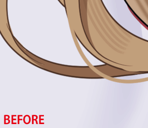 乗算で塗った影のレイヤーから選択範囲を作り[選択範囲の反転]で反転して乗せたい色で塗りつぶしたレイヤーを作成して上に重ねる。塗りつぶしの選択範囲を[レイヤーマスク]にして、合成モードを[スクリーン]にすると、影の縁に自然な色が加わって、お手軽に塗りの情報量を増やすことができる。髪の毛の影や艶を塗るのにも応用できるとか。