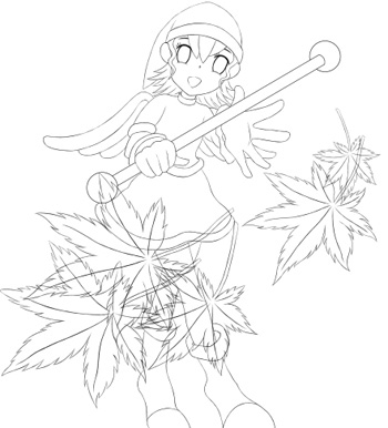 あとで調整しやすいように、キャラと紅葉の線画は別レイヤーに描いておきます。