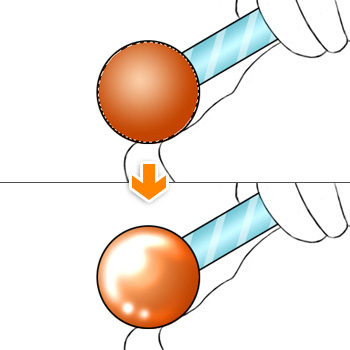 結合したらロッドの中心部分にハイライトを入れます。