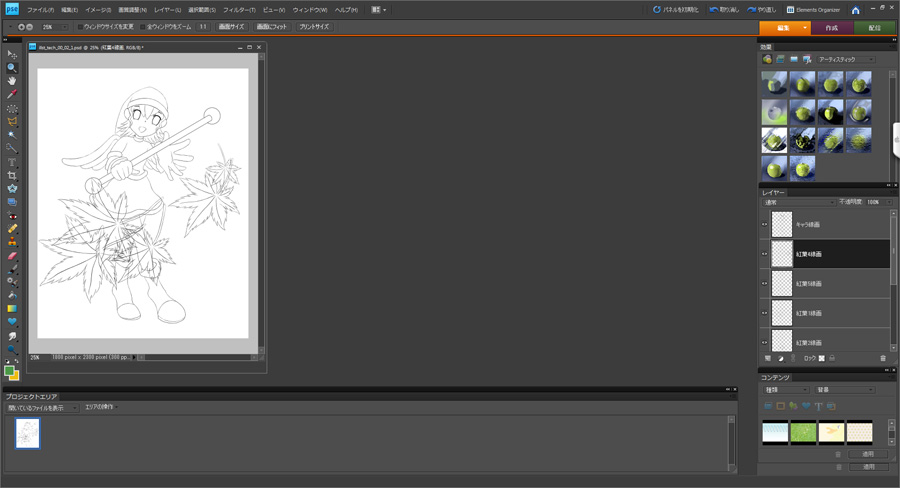 ラフをアナログで白紙に描いてからスキャナーで取り込み、PhotoshopElementsで開きます。