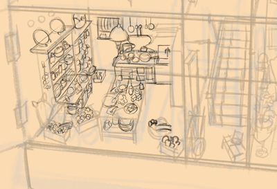 これをアタリにして小物を描き込んでいきます。