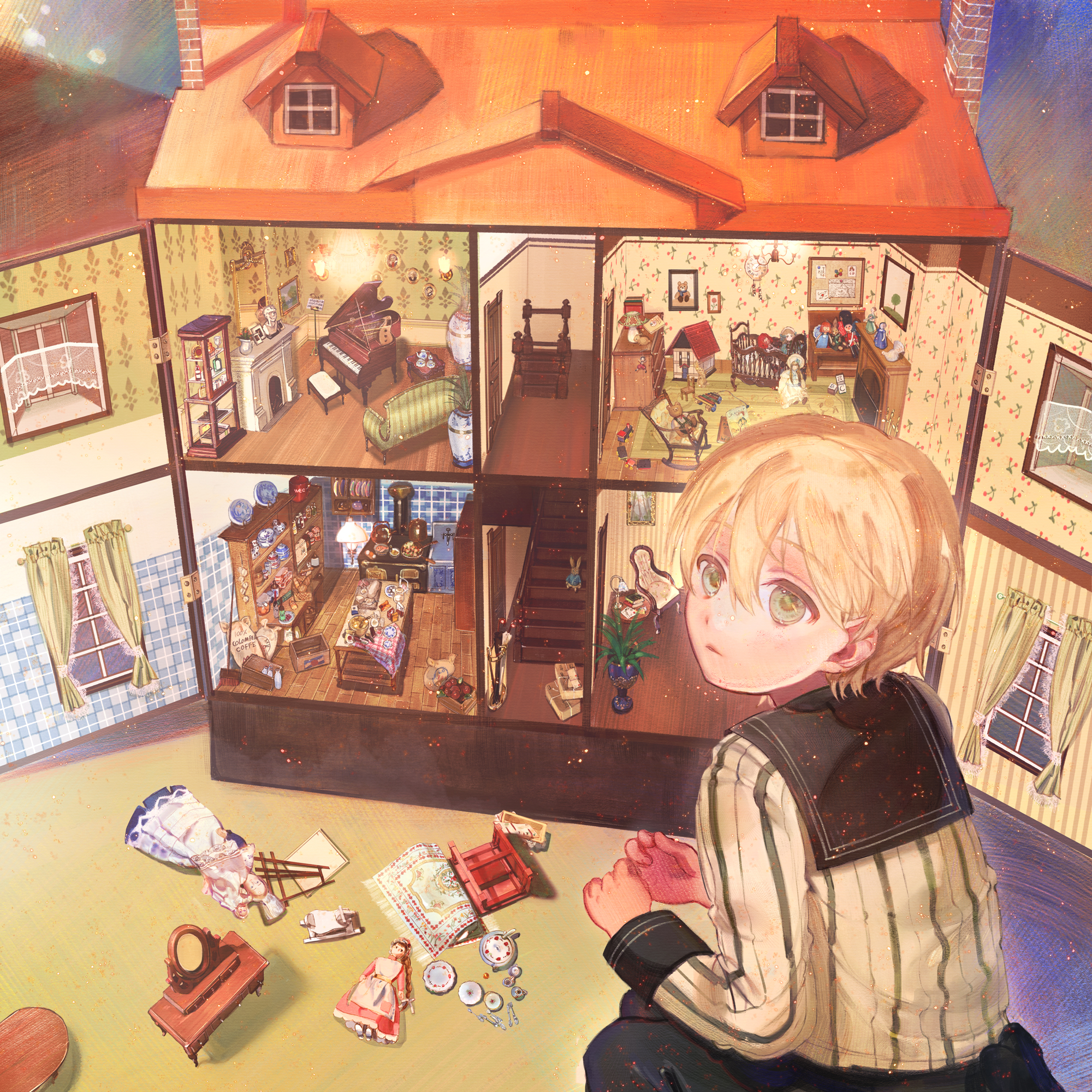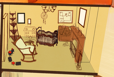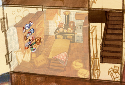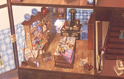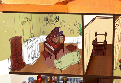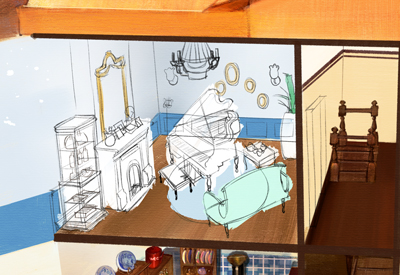 ドールハウスをひと部屋ごとに描き込んでいきます。
