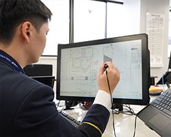 総務省の「自治体 DX 推進計画」に基づき全国の消防本部では「消防法令における申請・届出」の電子化を進めています。消防同意審査業務の電子化にあたっては建物の図面などのPDF等をモニターで見て審査したりPDFへの書き込みを行うため、ワコムの液晶ペンタブレットが活躍しています。